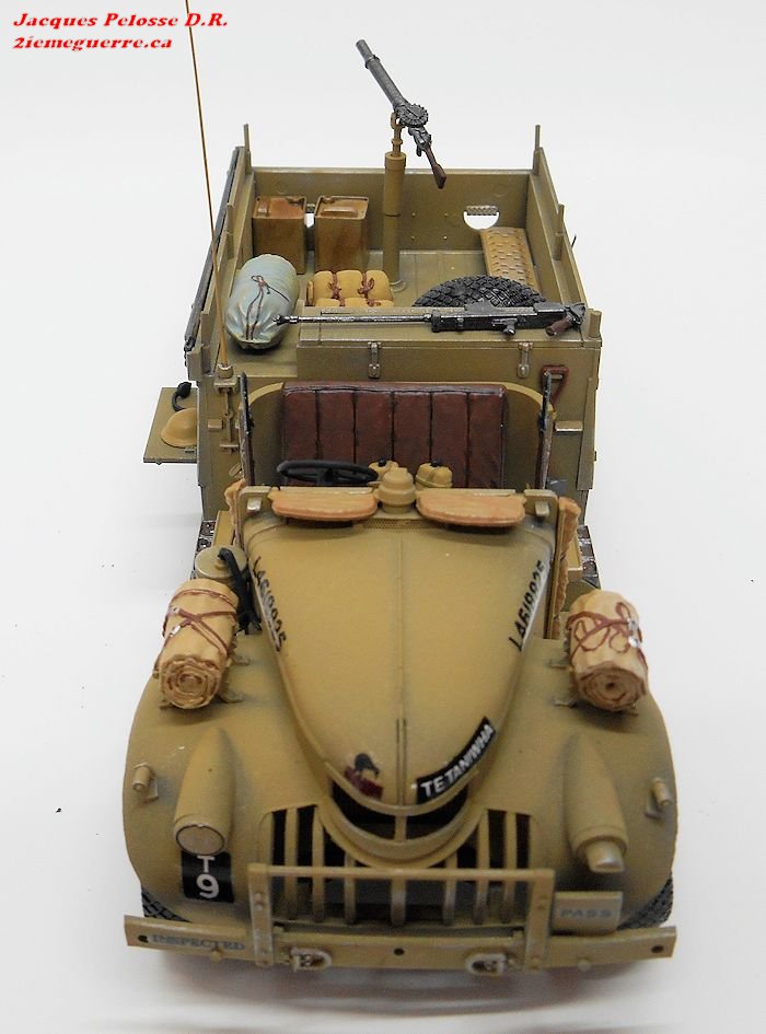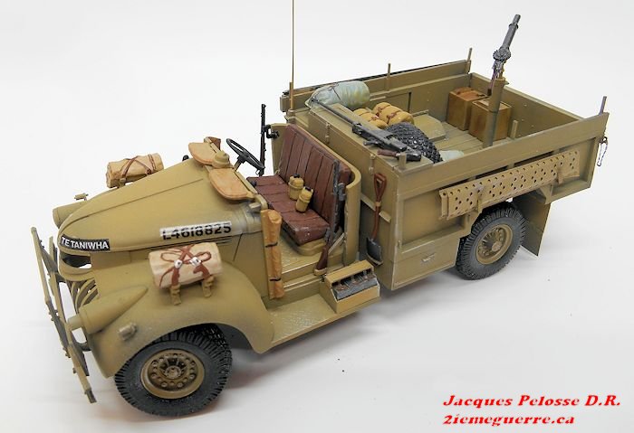 | Le Long Range Désert Group (LRDG) reçut en mai 1942 le Chevrolet 30 CWT. Construit par Chevrolet Canada, c'était une version " désert " du véhicule de production standard. Il avait des pneus conçus pour le désert et avait un châssis ouvert assez grand pour contenir tout le matériel nécessaire pour des missions de plusieurs kilomètres dans le désert. Les soldats qui l'utilisaient portaient la barbe et leurs uniformes étaient négligés ce qui leur conféraient une allure pirate. Ces camions furent testés à Petawawa Canada, une base militaire du Nord de l'Ontario. Les besoins étant urgent, on demanda à Ford et Général Motor de concevoir ce type de véhicule. Ceux représentés ci haut et le modèle sont des Chevrolet. Ces véhicules furent très utiles et surtout comblaient un besoin urgent de transport pour les alliés qui étaient dépassés par la tournure de la guerre. Ils allaient prouver hors de tout doute leurs valeurs durant les combats à grand déplacement de la guerre du désert. |