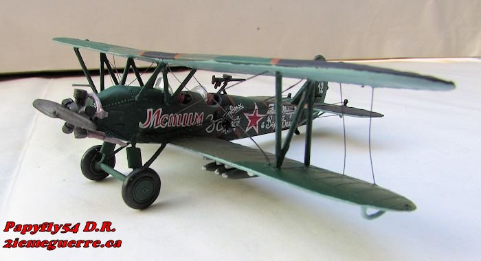 | Le Polikarpov-Po2 ou U-2 vit le jour en 1928 comme avion d'entrainement, transport de fret ou évacuation sanitaire. Ils furent utilisés comme avion de harcèlement de nuit car leur vitesse de 150 km/h en faisait une cible facile. Munis de deux bombes sous les ailes, à l'approche de la cible, on coupait le moteur pour demeurer silencieux et larguer les bombes. La majeure partie de ces avions furent des avions de liaison et de servitude. Il fut utilisé entre autre par l'escadrille française Normandie Niemen et piloté par Jean de Pange qui avait piloté un Bleinheim lors des opérations de Koufra. |